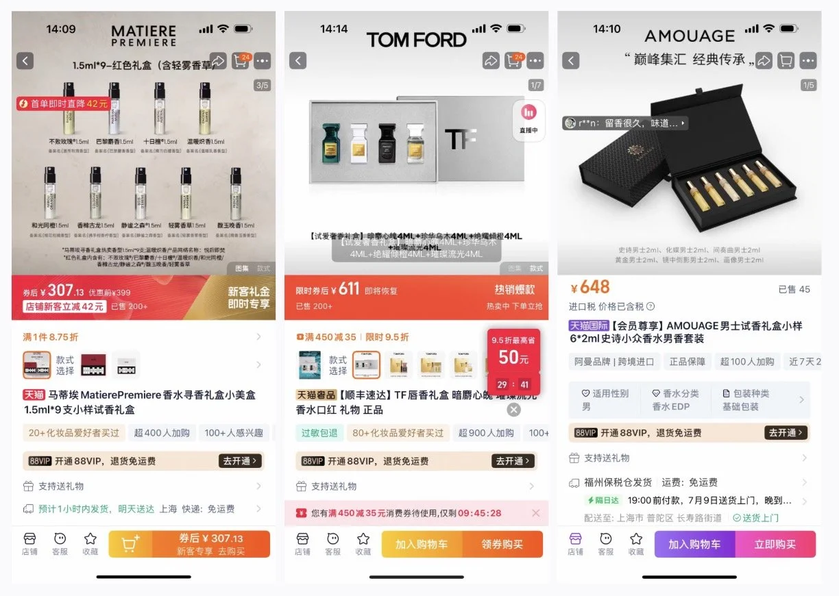 Tom Ford, Amouage and Matiere Premiere are just a few examples of foreign brands selling sets of perfume in China.