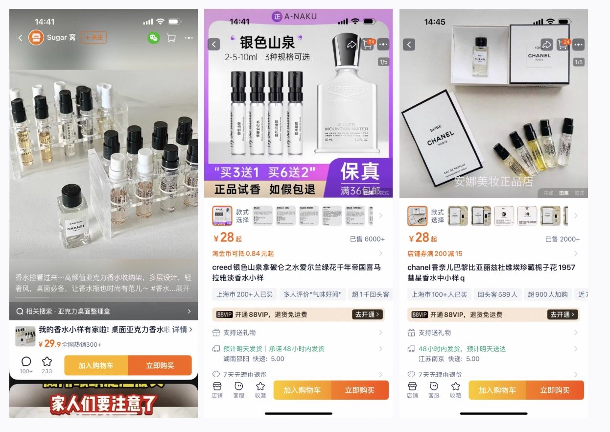 Chanel does not sell samples. So what can customers do? They can buy samples from third-party online shops and then visit the flagship store to purchase the full-size perfume.